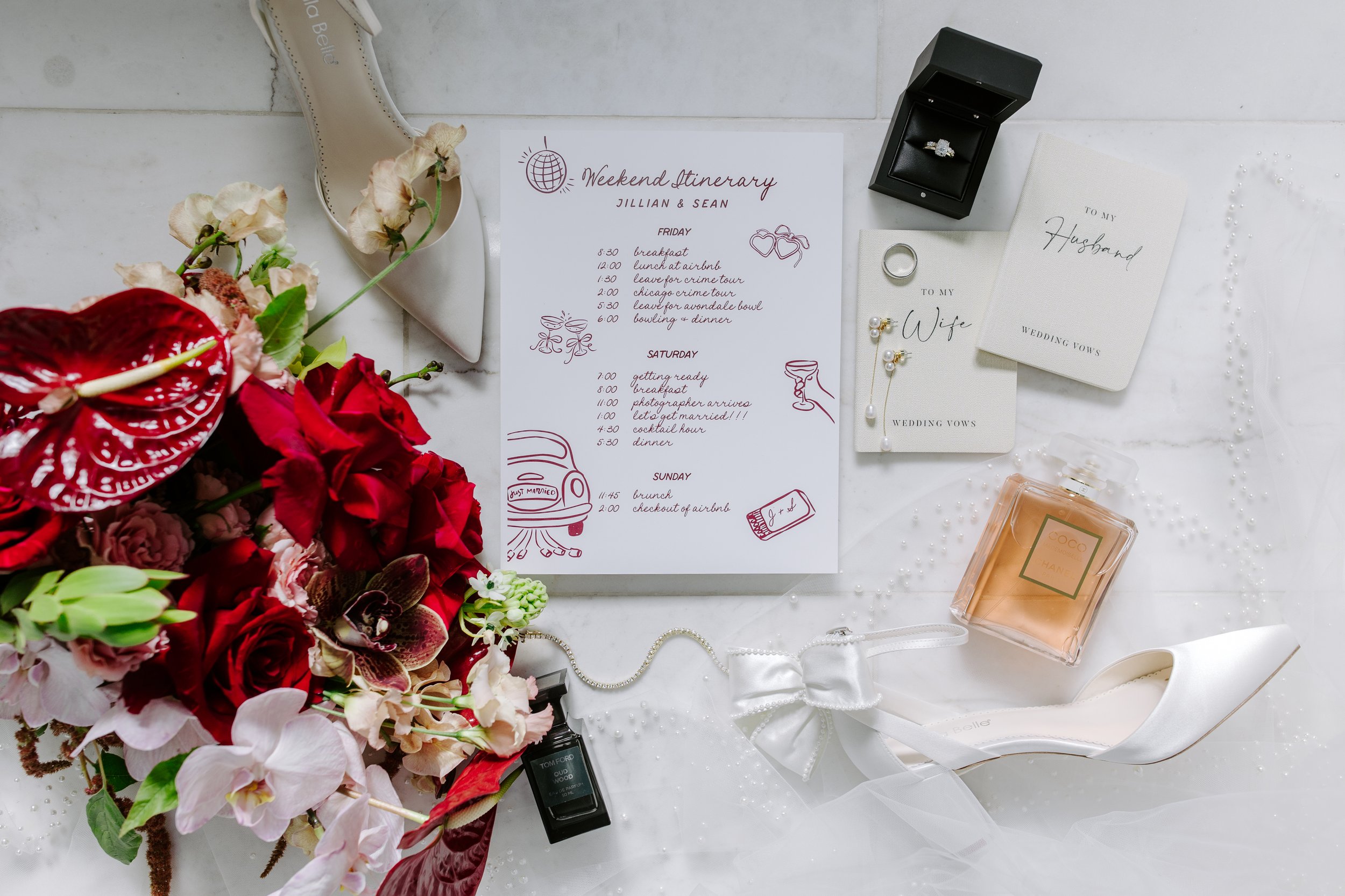 Jillian and Sean’s February wedding unfolded as a beautifully layered weekend—one that balanced tradition, intimacy, and a distinctly modern edge. Their celebration began with a meaningful church ceremony on Saturday morning, surrounded by family and friends, before transitioning into a private elopement-style dinner and celebration at a Logan Square Airbnb later that evening.